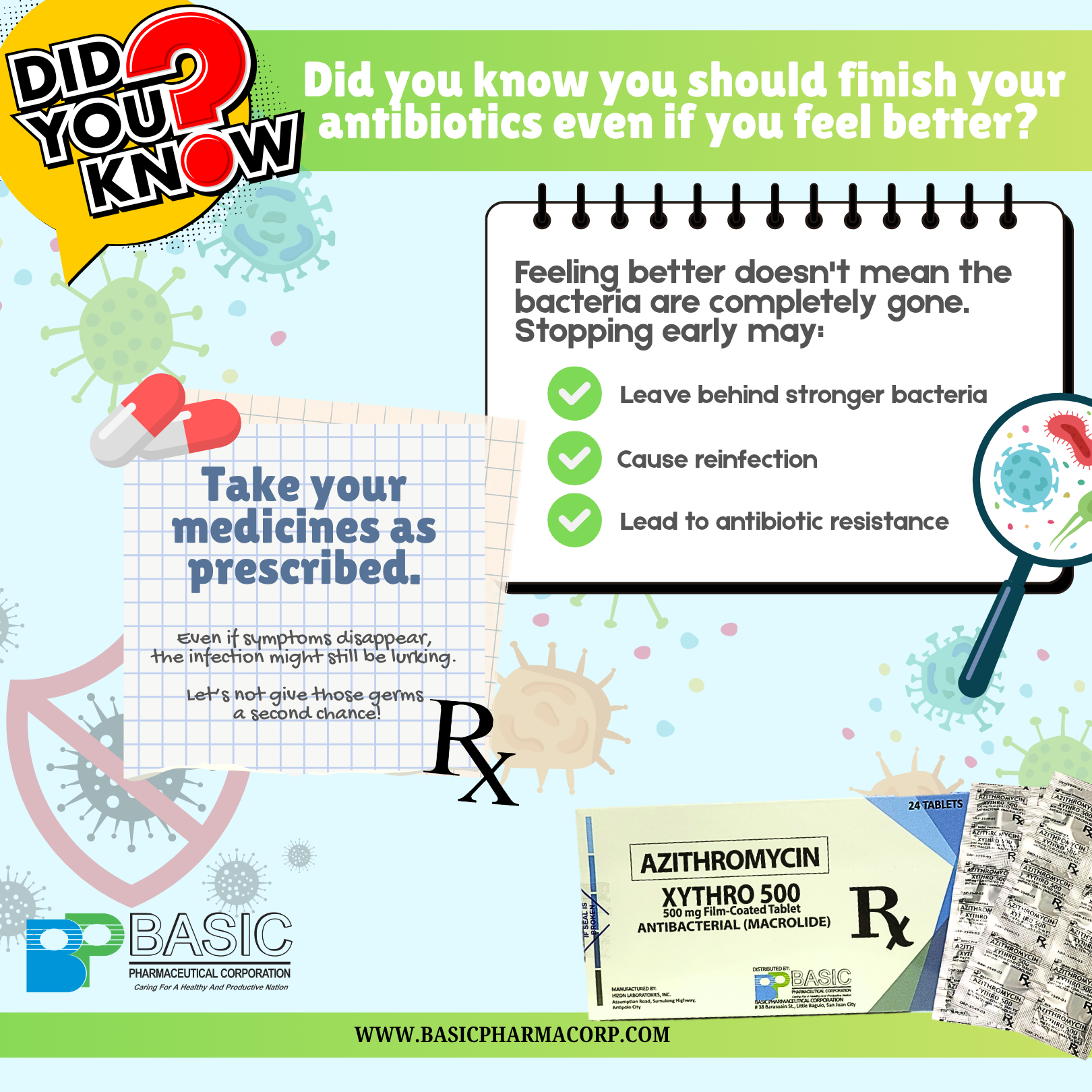 Feeling better does not mean the bacteria are completely gone. Take your medicine as prescribed by your physician.