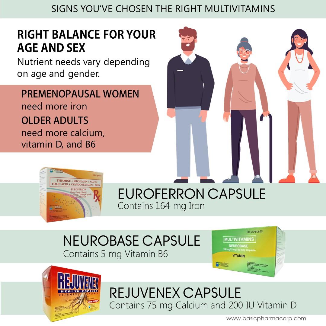 CHOOSE THE RIGHT MULTIVITAMINS, CHOOSE EUROFERRON, NEUROBASE, AND REJUVENEX